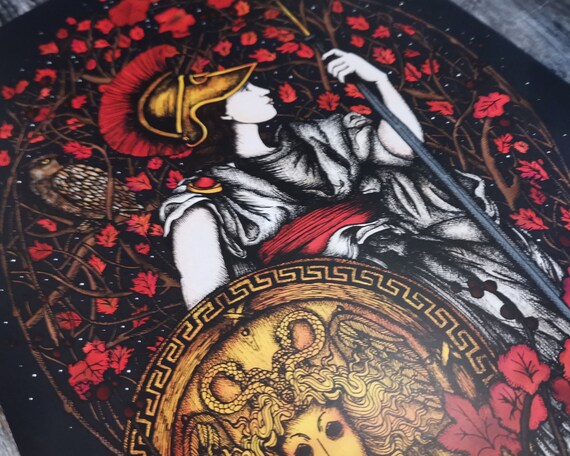Athena Print Gothic Home Decor Greek Mythology Print Medusa Print Fantasy Art Classical Art Goddess Print Gothic Gift A5 A4 A3