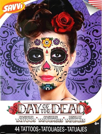 Floral Day Of The Dead Sugar Skull Temporary Face Tattoo Kit