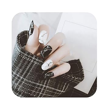 Amazon Com 24 Pcs Smooth Marble False Nails Long Square Full