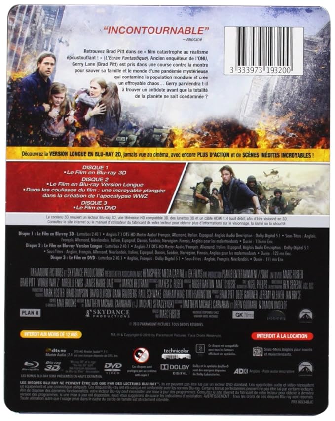 World War Z Edition Limitee Boitier Metal Blu Ray 3d